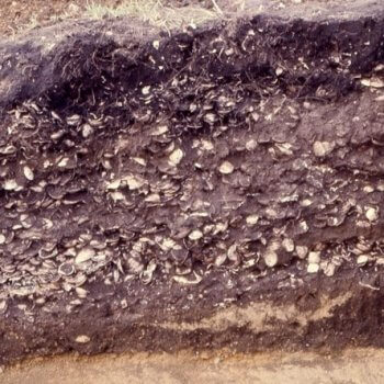 長七谷地(ちょうしちやち)貝塚は五戸川(ごのへがわ)を臨む標高10~30mの台地上に形成された縄文時代早期後葉の貝塚である。昭和56(1981)年に国史跡指定。