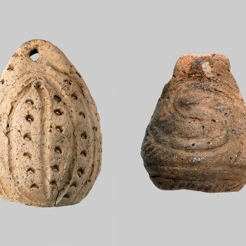 鐸形土製品は釣り鐘状の中空の土製品であり、上部につまみをもち、つまみ部に孔をあけたものが多い。孔にひもなどを通したと考える説もあるが、用途は分かっていない。