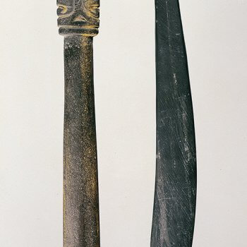 是川地区に所在する中居(なかい)遺跡は、縄文時代晩期の集落跡であり、多種多様な道具がほとんど完全な状態で出土した。出土品は多様で精緻なつくりをしており、先史工芸の到達点と称され、そのうちの963点が青森県是川遺跡出土品として重要文化財に指定されている。遮光器(しゃこうき)土偶は、顔を覆うほどの大きな目が特徴であり、大型のものは土器と同様に中が空洞に作られている。土偶は精霊を象ったものとも解されているが、当時のファッションが表われているとも考えられ、頭頂部にみられる多様な装飾は当時の髪型、耳朶(じだ)の穴から耳飾りの装着など、当時の習俗を考える上でも重要である。大きな胸や妊娠を示す正中線、豊かな腰回りなどが表現されており、女性をかたどった土偶の伝統はしっかりと表現されている。土偶は、その形状から子孫繁栄を願った祈りの道具と考えられており、丁寧に作られるが、そのほとんどは壊れた状態でみつかるため、大切につくった土偶を壊すことで願いを叶えようとしたものかもしれない。このほかに、手のひら大の扁平な石に文様を彫り込んだ岩版や、石を刀形に加工した石刀の用途は不明であるが、生産にかかわる道具ではなく、祈りの道具と考えられている。