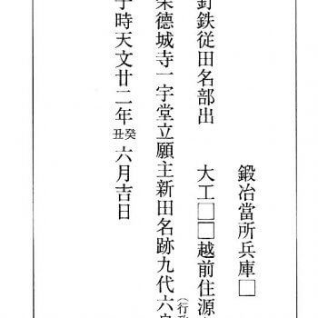 天文22年(1553)6月、八戸氏の家臣新田(にいだ)氏が、徳城寺(とくじょうじ)を造営したことを記す。このことより、小田周辺が新田氏の領地であったことがわかる。