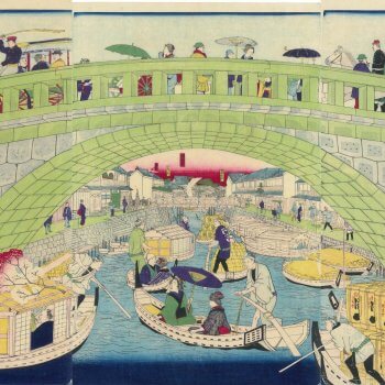 また、「水の都」を象徴するように石造りの橋〔浅草橋など〕や鉄製トラス橋〔鎧橋など〕もよく描かれた。