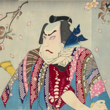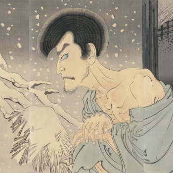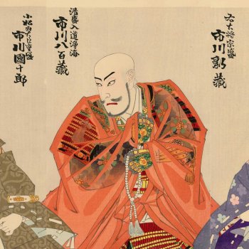 作品は、月岡芳年(つきおかよしとし)「雪月花」の団・菊・左。天覧歌舞伎直後に出された「歌舞伎十八番勧進帳」。通称〈重盛諫言〉と呼ばれる活歴物「歌舞伎座新狂言 富貴草平家物語」。