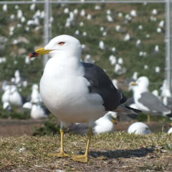 蕪島は、毎年約3万羽のウミネコ(東アジアの沿岸を生息地とするカモメ科の海鳥)が繁殖のために飛来する、日本有数の繁殖地である。