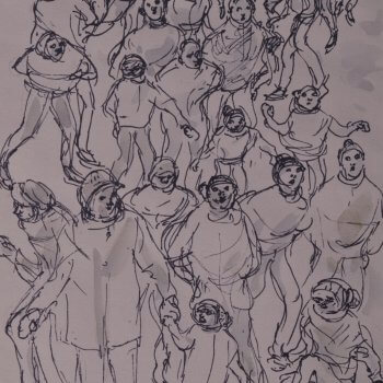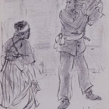 樋口猛彦(ひぐちたけひこ)(1914〜1982)は青森市出身の水彩画家。戦前は洋画家の松木満史(まつきまんし)(1906〜1971)が開設した青森美術研究所で素描を学び、青森県北地域を中心に活動していたが、青森空襲で被災し、戦後は妻の出身地である八戸市に居を移した。以降は八戸市内の学校で美術教師をしながら作品を発表。挿絵画家としても活躍し、新聞『デーリー東北』での連載小説「想う如く」の挿絵を担当した。樋口の水彩画とスケッチは、子どもや働く人、近隣の風景などを描いたもので、作品からは気取らない青森の風土が伝わってくる。